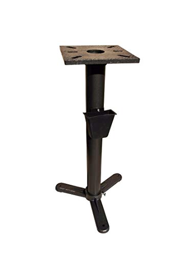 Measuring at an overall height of 34-inches, this pedestal stand allows you to work in a comfortable position without straining your back or neck. The base measures 9-.75-inches in length by 9-.75-inches in height, providing a sturdy foundation for your grinder.