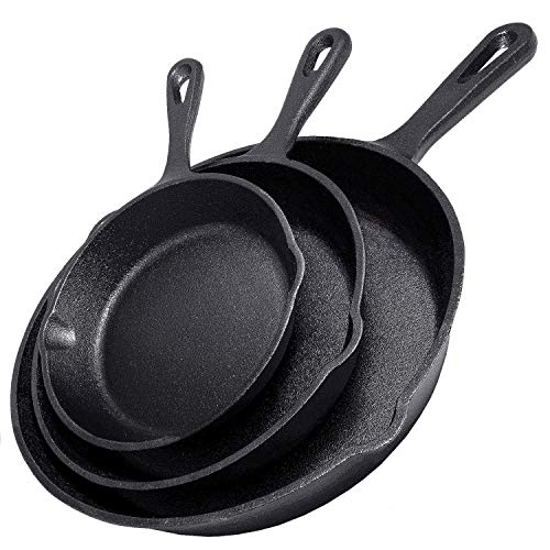 The Simple Chef Cast Iron Skillet 3-Piece Set is a must-have for every kitchen as it is virtually indestructible and will last for years to come. Made of heavy-duty cast iron, it is even better than any Lodge cast iron set.