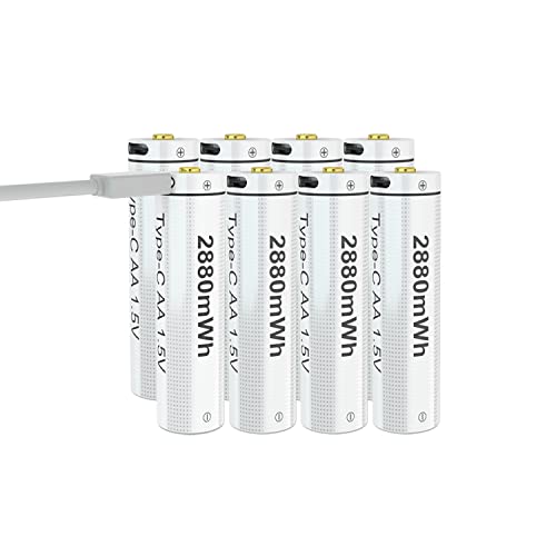 7. Rechargeable Aa Batteries Type-C Usb 1.5v 2880mwh Aa Lithium Rechargeable Batteries 1500 Cycle Cells