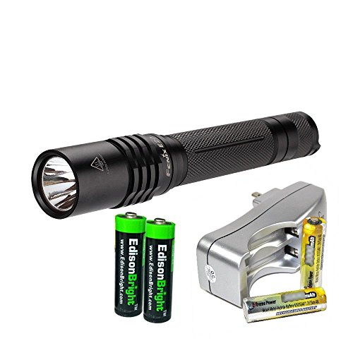 The bundle includes two NiMH rechargeable AA batteries and a charger, ensuring that the flashlight can be used for extended periods without needing to replace the batteries. Additionally, the bundle includes two EdisonBright AA alkaline batteries, which can be used as a backup power source.