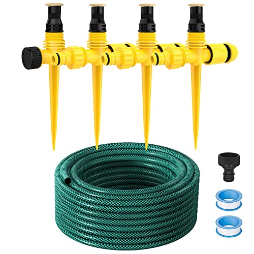 With no tools required for installation, this sprinkler set is easy to set up. The package includes four 5-inch risers, which can extend the sprinkler to reach tall plants. Each sprinkler can be adjusted from 10°-360° spraying angle, off-max flow control, and 360° spray direction, providing you with complete control over your watering process.