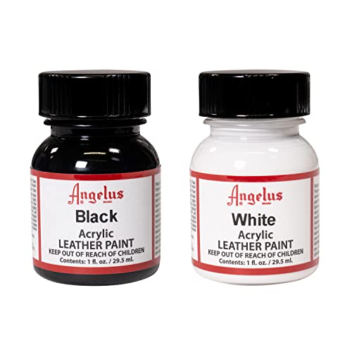 6. Angelus Brand Acrylic Leather Paint Waterproof 1oz – Black & White Duo