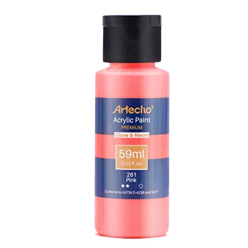The Artecho Acrylic Glow in the Dark Paint in Neon Red/Pink is a premium-quality paint that comes in a 2-ounce/59ml bottle with a flip top for easy dispensing. This paint is perfect for crafting enthusiasts who want to add a unique touch to their art pieces.