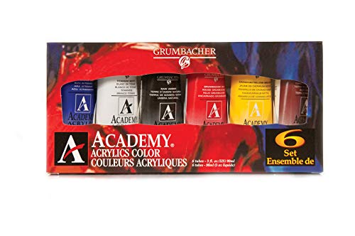 Grumbacher Academy Acrylic Paint, Gloss, 90ml/3 oz Metal Tube, 6-Color Mixing Set is ideal for artists to create art.