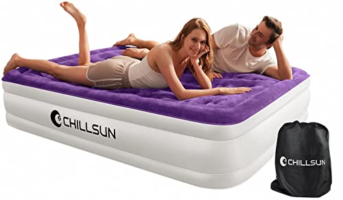The CHILLSUN Air Mattress is the perfect solution for those who want a comfortable and convenient sleeping experience. It is made with high-quality materials that ensure the airbed maintains its form and is puncture-resistant. The waterproof flocked top keeps the surface dry, while the PVC underside prevents any unwanted sliding. After use, simply wipe down with a damp cloth for easy cleaning.