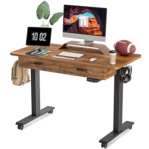 8. Fezibo Electric Standing Desk With Double Drawer.