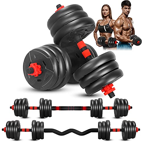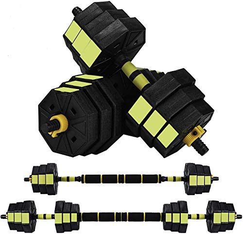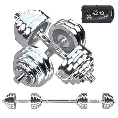 This all-in-one dumbbell-barbell set allows you to have a versatile workout. The dumbbells can be used to sculpt your arms, while the barbell setup allows you to practice dead-lifts or squats. This product is perfect for improving overall health or encouraging weight loss. It also helps strengthen the upper body, core muscles, and lower body. The adjustable design makes it easy to stay fit at home.