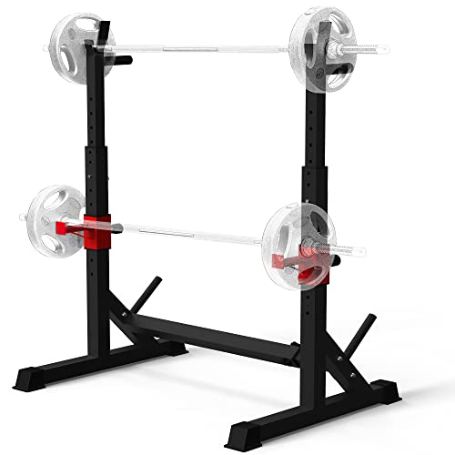 The squat dumbbell racks stands is an essential addition to any home gym. With a maximum weight capacity of 550 lbs for minimum height and 440 lbs for maximum height, this rack is suitable for standard and Olympic sized bars. Its simple and portable design makes it easy to move around, yet it is sturdy and has good security features to ensure your safety during workouts.