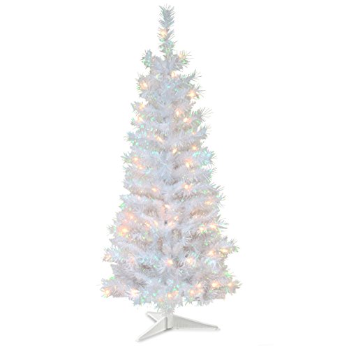 Ideal for those looking for a pre-lit, artificial Christmas tree with a white tinsel design and included stand at 4 feet.