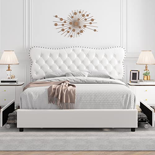 6. 4-Drawer Tufted Full Bed Frame – White