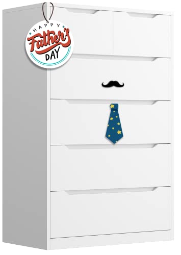8. Enhomee 6-Drawer Tall Bedroom Dresser – White