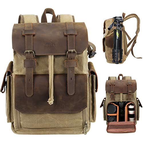 4. Endurax Leather Camera Backpack Bag For Photographers Waterproof Dslr Backpacks, Medium, Khaiki