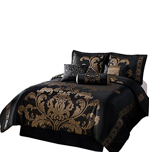 5. 7-Piece Jacquard Floral Comforter Set Bed-In-A-Bag, California King, Black/gold