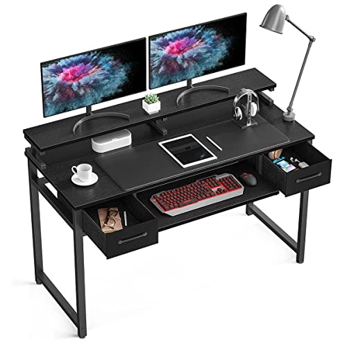 The ergonomic design of this 47-inch desk is perfect for people who want to work in a comfortable position. With a height of 4.5 inches, the elevated monitor stand shelf is designed to prevent neck pain by ensuring that the user looks directly at the screens rather than downwards. Additionally, the 7.8-inch width monitor shelf can hold two monitors or provide extra storage space, keeping your computer desk clean and organized.