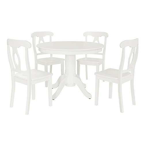 5. Dorel Living Aubrey 5 Piece Traditional Height Pedestal Dining Set, White