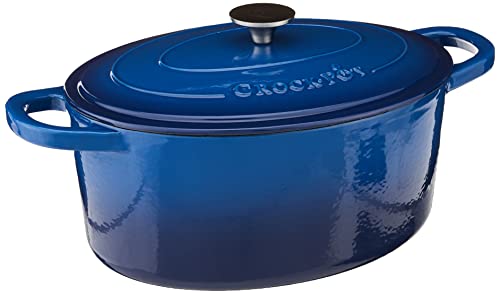 9. Crock Pot Artisan Enameled Cast Iron 7-Quart Oval Dutch Oven, Sapphire Blue –
