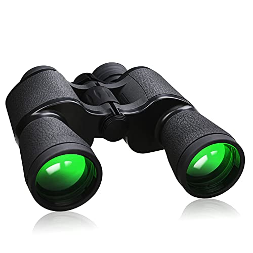 Introducing the Professional High-Powered 20×50 HD Binoculars, a top-of-the-line optical device designed to cater to your outdoor activities. This binocular boasts a 20x magnification with a 50mm objective lens that provides a wide field of view of 499 ft/1,000 yards. The premium BAK-4 prisms and optical FMC multi-layer broadband green film objective lenses ensure high definition vision, high contrast images, and improved light transmission.