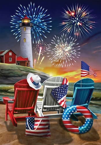 The product is ideal for those who enjoy jigsaw puzzles with patriotic, nautical, and beachfront themes for both adults and kids.