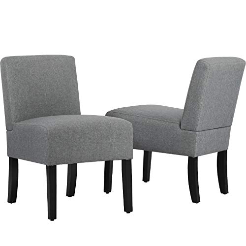 This set of two armless chairs is the perfect addition to any living space. With an easy assembly process, you can have these chairs set up in just 5-10 minutes. The comfortable seat is padded with high-resiliency foam, allowing you to relax and unwind after a long day. The chair's versatile design makes it great for not only bedrooms or living rooms, but also as a cozy seating area in your office.