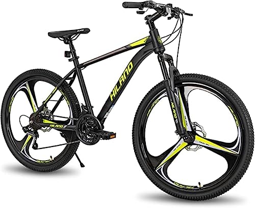 The Hiland Mountain Bike is a durable and reliable option for riders of all levels. Made with a high-carbon steel rigid frame and internal shift cable, this bike is built to withstand tough terrains and provide a comfortable riding experience. The frame and suspension fork work together to absorb shock, ensuring stability and ease of use on trails, mountain roads, city streets, and more.