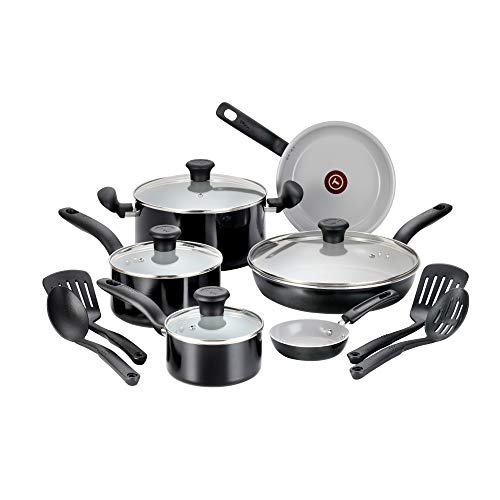 9. T-Fal Initiatives Ceramic Nonstick Cookware Set 14 Piece Pots And Pans Black