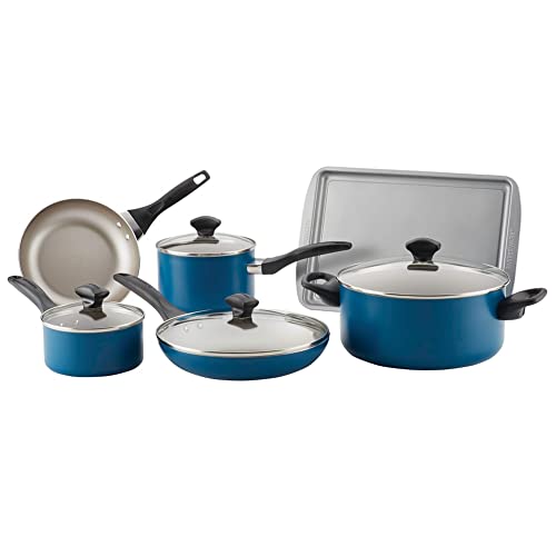 2. Farberware Dishwasher Safe Nonstick Cookware Pots And Pans Set, 15 Piece, Teal