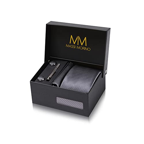 The Massi Morino gift set is an exceptional choice for the modern man who wants to add a touch of elegance to his outfit. This set includes a stylish men's tie, a gentleman's scarf, cufflinks, and a silver tie pin. The enclosed step-by-step instructions will help you to tie a classic Windsor knot correctly, making the tie look even more sophisticated.