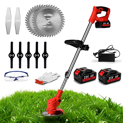 The product is an excellent value for money, and the package includes a weed whacker, 2x 21V rechargeable Li-Ion battery, a charger, a 6" saw blade, a 4" saw blade, 2x metal blades, 5x plastic blades, 2x rotating wrenches, a pair of non-slip gloves, a pair of safety glasses, and a user manual. This makes it a complete package that doesn't require any additional purchases to get you started.