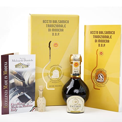 Experience the true taste of Italy with this Traditional Balsamic Vinegar DOP Certified, the only type of bottle guaranteed by the Consortium of Traditional Balsamic Vinegar Producers in Modena, Italy. This bottle ensures that you are tasting authentic "Aceto Balsamico Tradizionale di Modena" that has been directly imported from a small family producer in Modena.