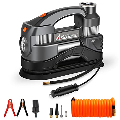 2. Kensun AC/DC Digital Tire Inflator: This air compressor is versatile and can be powered using an AC wall outlet or a 12V car cigarette lighter socket. It has a digital display and can inflate tires up to 100 PSI.