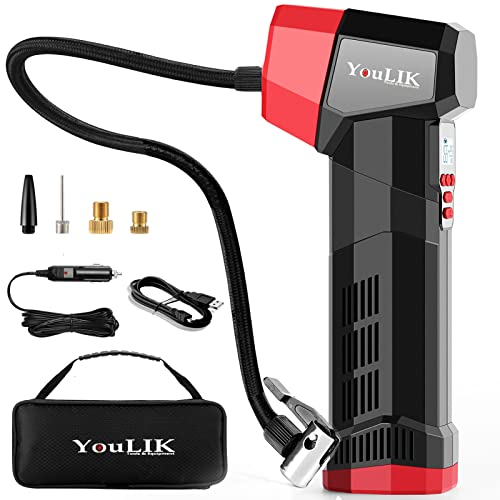 This tire inflator is not limited to just inflating tires. It is also handy for inflating motorcycles and bicycles, as well as wheelbarrows. It comes with extra inflator tips that allow you to quickly pump up sports balls, pool floats, toys, and yard decorations. Additionally, it features built-in LED lights that can be quite handy for use in the dark.