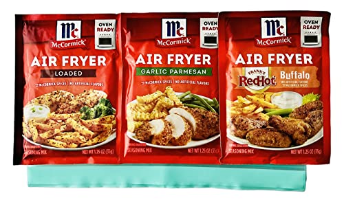 Looking for a way to add some flavor to your air-fried dishes? Look no further than the McCormick Air Fryer Seasoning Mix Bundle. This bundle includes 3 assorted seasoning mixes: Loaded, Garlic Parmesan, and Buffalo, as well as 1 bag for leftovers or storage. And if you don't have an air fryer, no problem! These mixes can also be used in the oven.