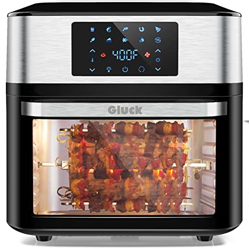 Not only is this air fryer an all-in-one appliance, but it also functions as a rotisserie, pizza grill, and oven toaster. With a wide temperature range of 180℉ to 400℉, this large air fryer allows you to cook a variety of dishes with ease. Whether you're air frying, baking, grilling, roasting, toasting, dehydrating, or rotisserie cooking, this appliance can do it all.