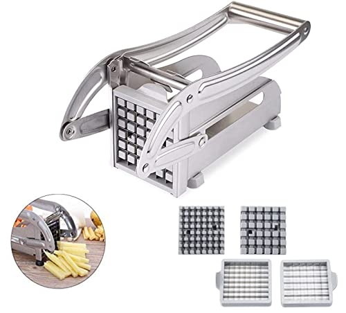 Introducing a convenient and durable fry cutter that allows you to make restaurant-style French fries right in the comfort of your own home. This fry cutter is perfect for cutting potatoes and turning your favorite vegetables into fantastic veggie sticks, such as carrots, cucumbers, and zucchinis, as well as prepping onions and bell peppers. Please note that it is not recommended for sweet potatoes or yams.