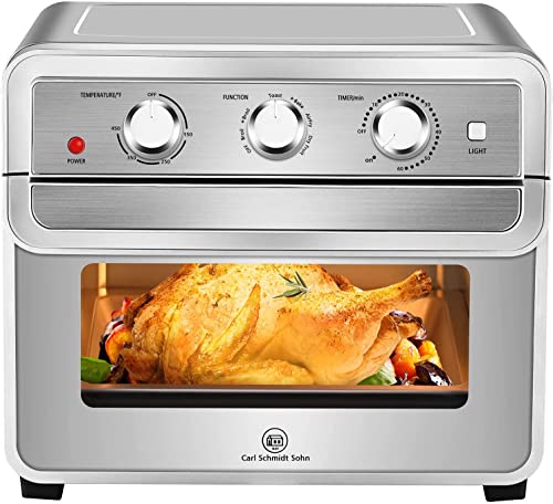 Introducing the CARL SCHMIDT SOHN air fryer oven, a versatile kitchen appliance that simplifies any cooking task with its 6 preset functions. This powerful 1700W oven is capable of air frying, broiling, baking, toasting, dehydrating, and warming, making it an all-in-one solution for any home cook. The temperature knob control ranges from 150-450℉ and the 60-minute timer knob control allows for diverse cooking needs to be satisfied.