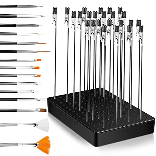 This package includes a painting stand base, 24 alligator clips, and 15 clean brushes, providing enough quantity and styles to meet your daily needs and replacements. The materials used in the product are sturdy and solid, ensuring long-term use. The painting stand base is made of plastic and measures 15 x 10 x 2.4 cm/ 5.91 x 3.94 x 0.94 inches, while the alligator clip sticks are 18.5 cm/ 7.28 inches in length, making them suitable for hanging in most places without taking up too much space.