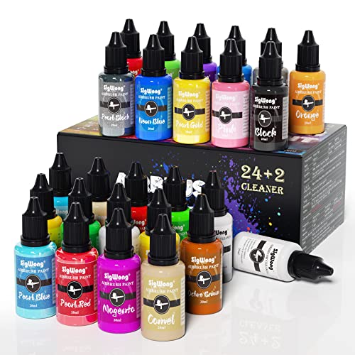 The SigWong airbrush paint set is a highly versatile and diverse collection of colors that promises fantastic visual results. With a total of 24 colors to choose from, including 16 common colors, 4 neon colors, and 4 pearl colors, this set is sure to meet all your artistic needs. Each bottle contains 20ml of high-quality airbrush pigment, allowing you to create stunning, unique projects.