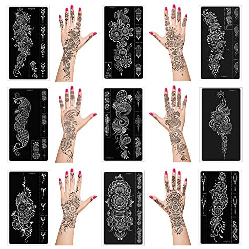 The product is ideal for creating temporary henna tattoos on the hands and forearms using reusable stencils.