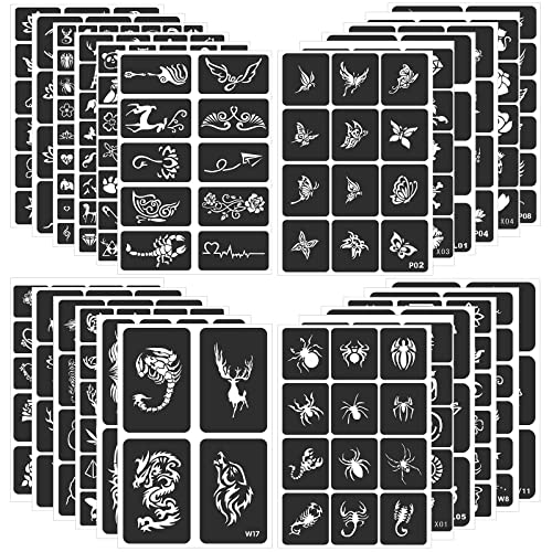 This kit offers a variety of patterns to choose from, including butterflies, lips, henna, roses, plants, scorpions, spiders, deer, animals, stars, diamonds, letters, and more. This variety makes it suitable for boys, girls, teenagers, and adults. The set includes one high-quality album and 20 sheets, with a total of 446 pieces, providing you with endless possibilities to create unique designs. The album color is randomly shipped to ensure that every kit is unique.