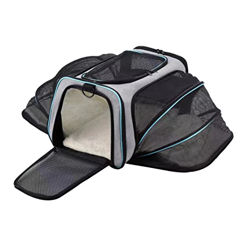 This pet travel carrier is airline approved and fits under the front cabin seats on most airlines. The mesh increases ventilation and reduces travel anxiety, making it perfect for long trips. If you're looking for a soft-sided pet carrier that is expandable, durable, and easy to carry, the Airplane Dog Carrier Expandable is an excellent choice.