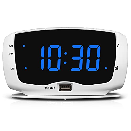 Ideal for a bedside alarm clock with USB charging ports, large numbers, digital FM radio, and an earphone jack.