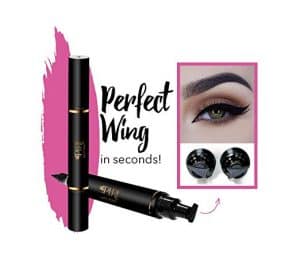 You can get that perfect winged look by following four easy steps with this liner. The stamp gets applied to the corner of the eyes, creating the perfect wing. Then you simply use the liner to fill in the top lash line, connect it to the wing, and fill in where needed to create a great winged or cat eye look. Given the stamp, you can be assured your winged look will be symmetrical on both eyes, something very difficult to achieve without the help of a stamp.