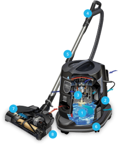 One superior quality of the water filtration system is that it catches considerably more dirt and keeps them captured. Getting dirt, dust, hair, and other minute particles wet is probably the most efficient ways to keep them from flying about the cleaner and the disposal bag, eventually getting released into your home air.